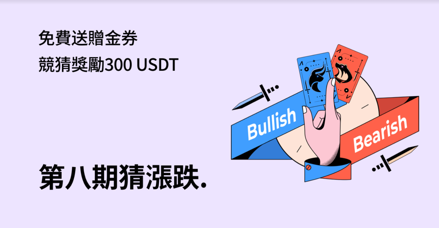 第八期猜漲跌,免費送贈金券,競猜獎勵300 USDT