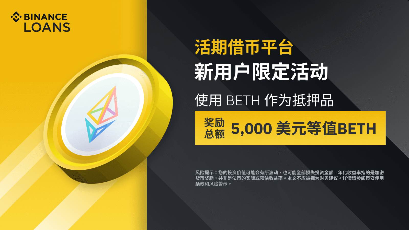 幣安活期借幣:使用BETH作為首次活期借幣抵押品,瓜分5,000美元等值BETH代幣券獎勵