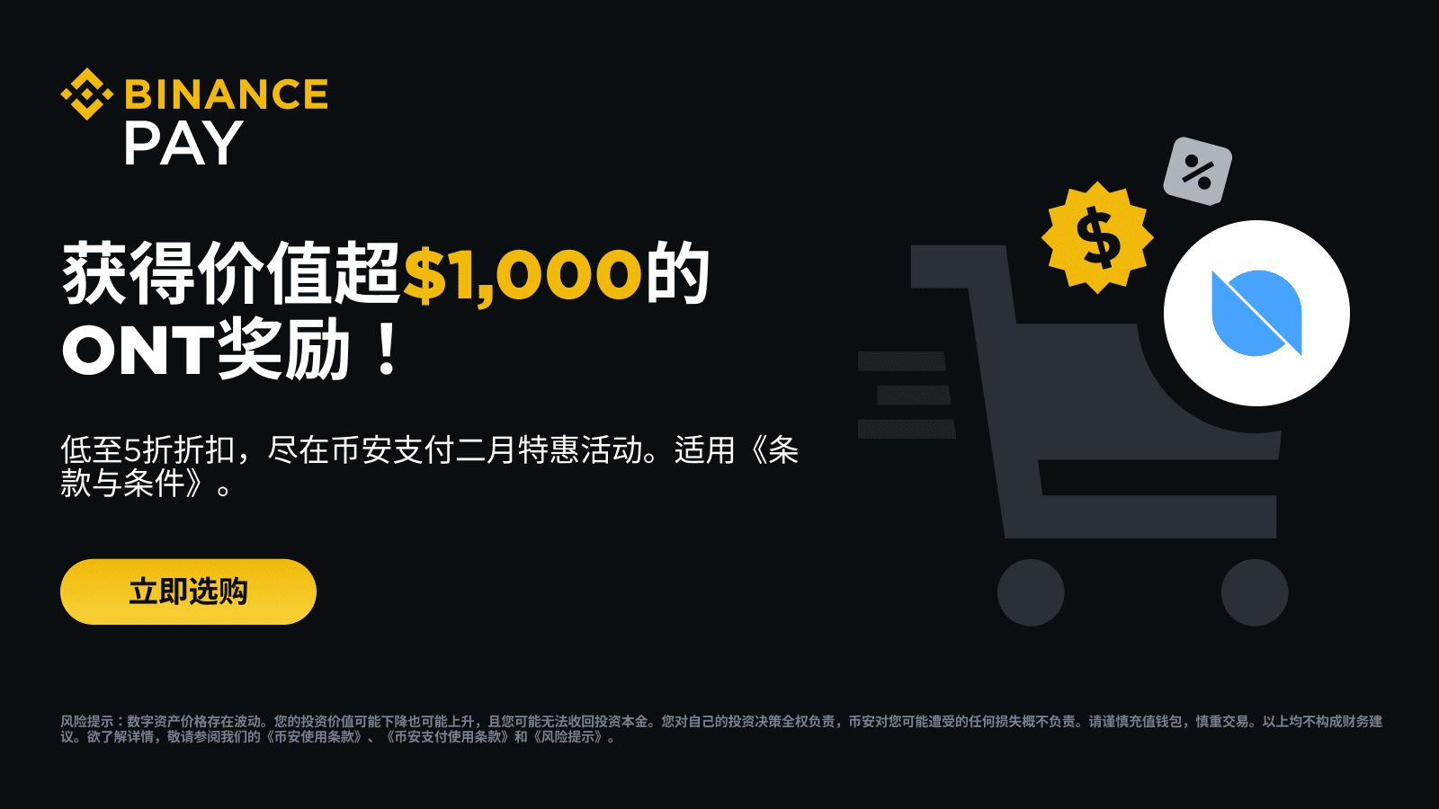 幣安支付:二月獲得超過1,000 美元等值ONT獎勵,并享低至50%折扣!