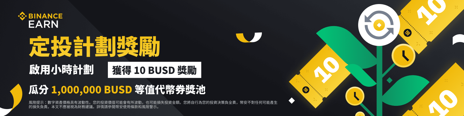 幣安定投啟用小時計劃:贏取最多10 BUSD等值代幣券!