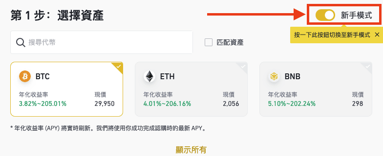 雙幣投資幫助用戶在未來期望的價格高賣低買並賺取收益,雙幣投資新手模式旨在為新用戶提供簡便的操作介面。新手模式將自動顯示給首次認購雙幣投資的用戶,您可以通過按鈕激活打開新手模式,產品端將提供指南以幫助您完成認購操作。
