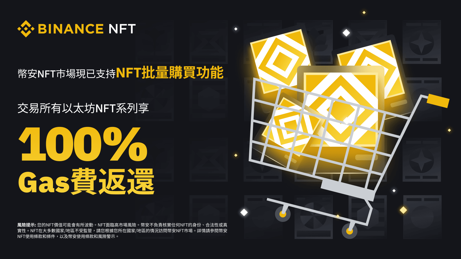 立即在幣安NFT市場上使用批量購買功能享Gas費返還!