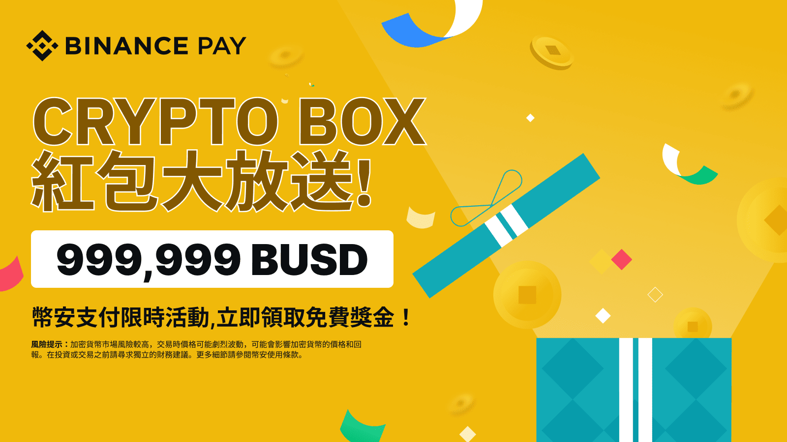 幣安支付推出“Crypto Box”限時活動,與您分享999,999 BUSD!