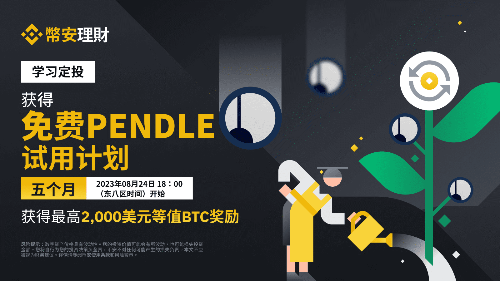 定投PENDLE:申購定投以獲得最高2,000美元等值BTC代幣券,完成測驗以獲得免費的每月PENDLE定投試用計劃