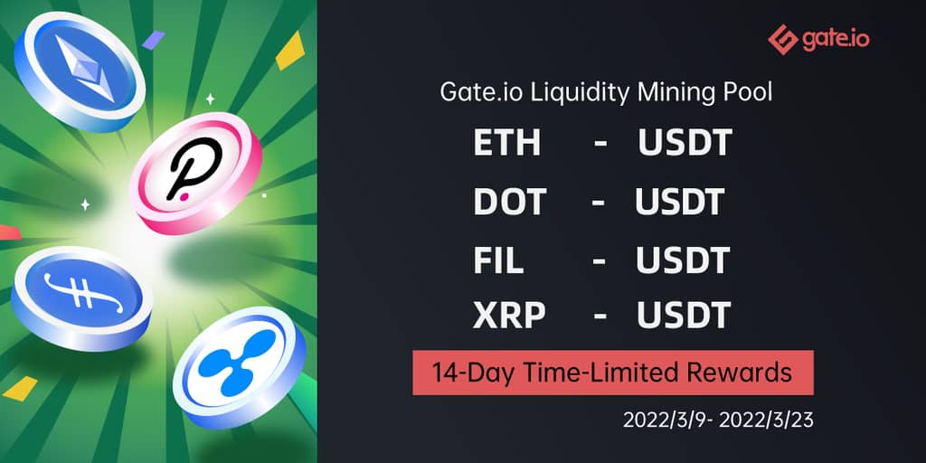 Gate.io 已向 ETH/USDT、DOT/USDT、FIL/USDT、XRP/USDT 流動性池添加 14 天限時獎勵(高達 59,386 VRA)