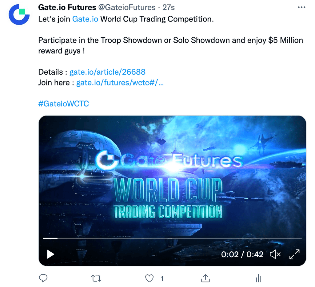 歡慶世界杯交易大賽,發布 WCTC 贏取 3000 美元,方法是分享#GateioWCTC 的海報或視頻,鏈接然后發布到社交媒體上。