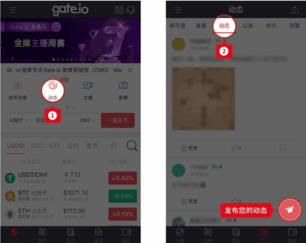 網頁/客戶端:登錄網頁端—菜單導航欄選擇“幣圈”頁面,點擊動態即可
