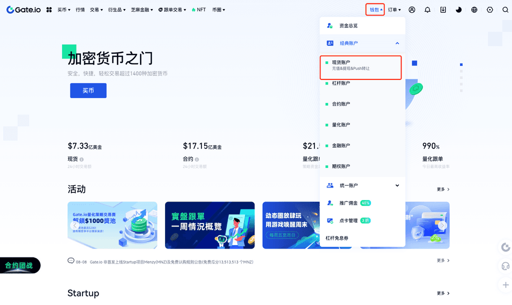 通過Web端口登陸您的賬戶,在頁面的右上角點擊“錢包”,選擇“經典賬戶”子頁面“現貨賬戶”