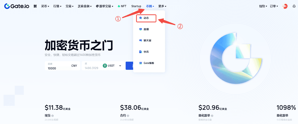 網頁/客戶端:登錄網頁端—菜單導航欄選擇“幣圈”頁面,點擊動態即可
