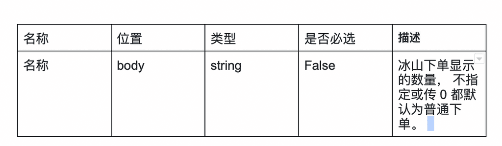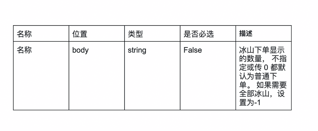 為進⼀步優化 API V4產品功能, Gate.io將于2022年12月20日 16:00 ( UTC 8) 對現貨下單接口冰山委托功能進行調整。調整后冰山委托僅支持部分隱藏功能, 不再支持完全隱藏功能。詳細內容如下: