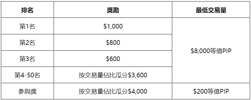 所有合格參與用戶均可根據交易量瓜分$10,000等值PIP獎池。