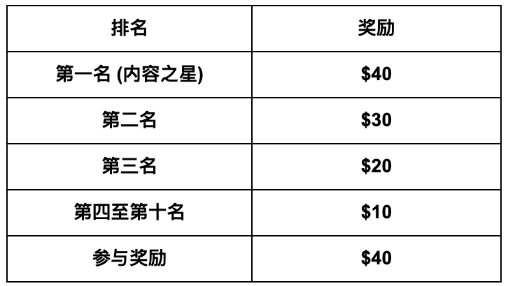 2. 動態“內容之星“排名會根據發帖數量、內容平均質量、互動量綜合評定。如無人達到要求,則只分發參與獎。