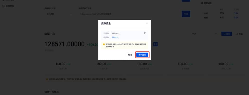 - 登錄傭金後臺,確認待提取金額;