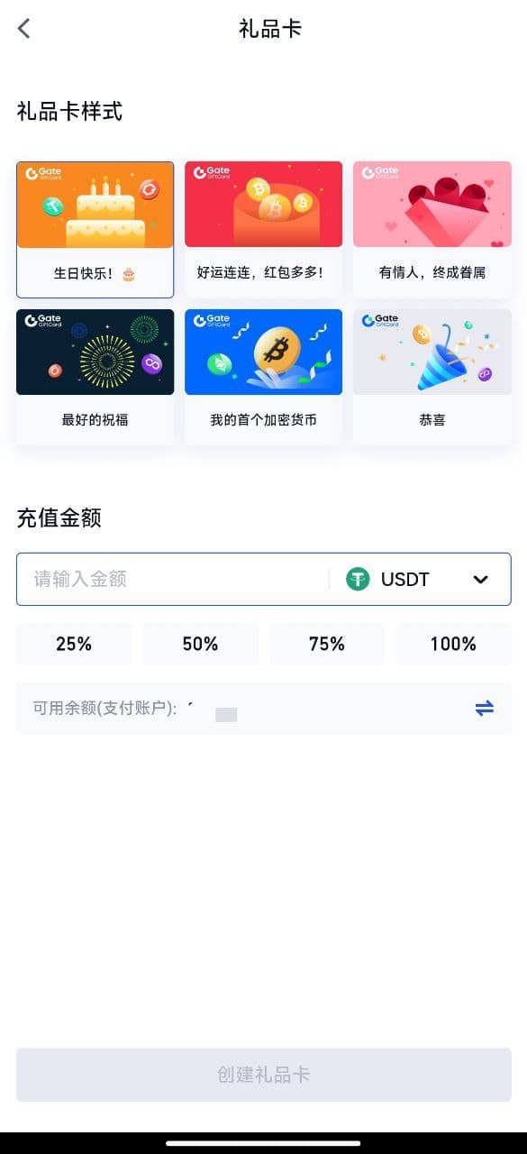 3.選擇禮品卡樣式,確認要發送的加密貨幣和發送金額,最后點擊【創建禮品卡】