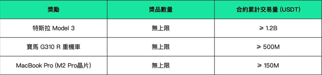 七、活動說明1.在正式報名結束前,報名參與個人賽(包含合約個人賽 現貨個人賽)的用戶仍有機會選擇加入合約團隊賽,去創建團隊或加入其他團隊。2.若正式報名結束前團隊人數仍不足5人,團長可解散團隊,解散後團員可自行選擇加入其他團隊或參與個人賽。若正式報名結束後團隊人數不足5人,且團長未解散團隊,則系統將自動解散該團隊,團員可在解散後的24小時內自行加入其他團隊,若團員在解散後的24小時內未加入其他團隊,系統會將其隨機分配至其他團隊。3.用戶成功報名參賽後,系統將按照用戶KYC情況,自動將用戶分配至對應的賽區。參與團隊賽的團隊以及參與個人賽的用戶均不能跨賽區參賽。4.本次大賽共分為6個賽區:主賽區、東亞賽區、東南亞賽區、東歐賽區、東南歐賽區、拉美賽區。所有的參賽用戶應自行確保遵守本地的法律,若不符合其本地法律的要求,請勿參加本大賽。5.合約收益額計算公式 = [期末合約帳戶淨值(包含未實現盈虧及/或體驗金)- 初始合約帳戶淨值(包含未實現盈虧及/或體驗金) 比賽期間合約帳戶劃出額 - 比賽期間合約帳戶劃進額]6.合約收益率計算公式 = [比賽期間已實現盈虧 (BTC/USDT永續 ETH/USDT永續) 比賽期間未實現盈虧 (BTC/USDT永續 ETH/USDT永續) ] / [初始合約帳戶淨值 比賽期間合約帳戶劃進額]*100%7.參與合約個人賽收益率排名,初始合約帳戶淨值 比賽期間合約帳戶劃進額 ≥ 500USDT;合約個人賽收益率排名僅限BTC/USDT永續、ETH/USDT永續交易對參與。8.合約交易量計算公式= 比賽期間開倉量 比賽期間平倉量9.活動期間,合約團隊賽、合約個人賽、活動福利等環節的獲獎用戶需滿足正式比賽期間合約交易量 ≥ 5,000USDT;早鳥獎勵將於早鳥報名結束後5日內發放。10.獲得合約團隊賽獎勵的團隊,在內部獎勵瓜分時,團長不重複參與團員之間的獎勵分配。參賽團隊人數最低需不低於5人,最高不設上限。11.活動期間,用戶一旦報名合約團隊賽後不能更改,合約個人賽和合約團隊賽獎勵不可同時兼得。合約團隊賽中按合約收益額、合約交易量分別進行排名,此兩項排名對應獲得的獎勵可同時兼得。此外,合約個人賽中按合約收益率、合約交易量分別進行排名,此兩項排名對應獲得的獎勵亦可同時兼得。12.本屆大賽第六部分-【活動福利】中的6個活動,屬於所有賽區用戶共同參與並共同瓜分獎勵的活動。13.在【活動四:開走屬於您的跑車】中,參與團隊賽的團隊達到對應交易量要求,則獎品發放給團長,團隊中的個人無法獲得該獎品;參與個人賽的用戶達到對應交易量要求,則獎品發放給用戶本人。14.【活動四:開走屬於您的跑車】中的實物獎勵涉及到車輛預訂、製造、運輸等流程,車輛最終交付至用戶的時間以車輛製造商實際交付時間為準。若用戶獲得特斯拉 Model 3,則該用戶可自主選擇在某個國家/地區接收該車輛;但因購置車輛會涉及相關稅費,故用戶所選國家/地區的特斯拉 Model 3的稅後價格,不可高於香港的特斯拉 Model 3的稅後價格。15.一個實名用戶只能使用一個帳號參加,子帳號不作為獨立帳號參與活動。領取體驗金及獲得比賽獎勵,需完成帳戶KYC(除Web3用戶外)。16.為維護比賽的公平性,API用戶及專業等級(VIP11及以上級別)用戶將被限制參與本次大賽。17.活動最終獎池金額由合約和現貨有效交易人數確定,有效交易人數=活動報名人數-比賽期間未開倉用戶數-經風控系統檢測的作弊用戶數(包括但不限於批量註冊虛增獎池、配對交易、自成交等)。現貨有效交易用戶是指成功報名參賽且比賽期間現貨累計交易量 ≥ 10,000USDT的用戶。18.活動期間,團長可通過邀請連結邀請新用戶註冊並參與比賽,邀請好友享最高60%長期返傭及每月800美金底薪獎勵!19.什麼是合約體驗金?合約體驗金可用於合約交易保證金、抵扣帳戶虧損、交易手續費、資金費用;Gate.io 合約體驗金將以 USDT 或 BTC 形式進行發放;用戶通過指定運營活動獲得合約體驗金,可在合約交易區進行領取。20.任何團長提供的市場分析不代表 Gate.io意見,任何團員遭受交易損失,Gate.io不承擔任何責任。21.風險提示:請用戶務必注意,虛擬幣交易受市場、政策等多方面因素影響,市場波動很大,漲跌難以預測,請務必注意市場風險,謹慎交易。
