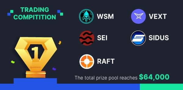 10月01日至10月15日,我們舉辦了4場交易大賽,包括WSM、VEXT、SEI、SIDUS、RAFT,總獎池為64,000美元。