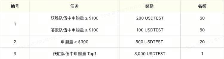 任務三:勝利隊伍中累積申購量最高者將獨得 3,000 獎金。
