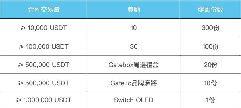 📌活動二:交易升級,領取您的雙旦禮物清單!活動期間,新老用戶參與Gate.io永續合約交易且累計合約交易量 ≥10,000 USDT,即可獲得Switch OLED、Gate.io品牌麻將以及Gatebox周邊禮盒等豪華禮品。數量有限,先到先得!詳情如下: