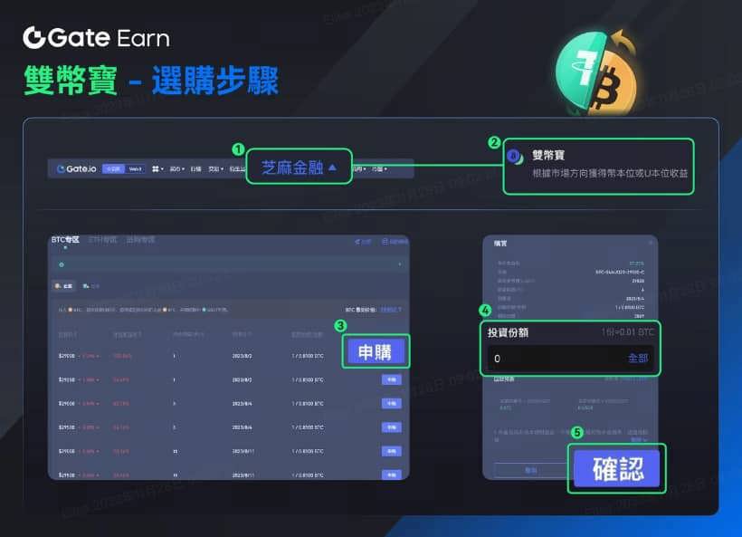 1.點擊活動報名連結2.投資雙幣寶3.申購達標,賺取獎金