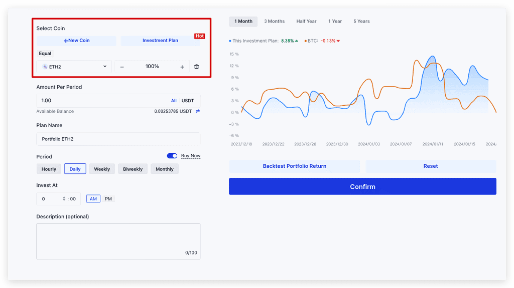 前往 Gate.io 定投理財 > 點擊新建定投 > 在左上的選擇幣種中找到 ETH2 代幣
