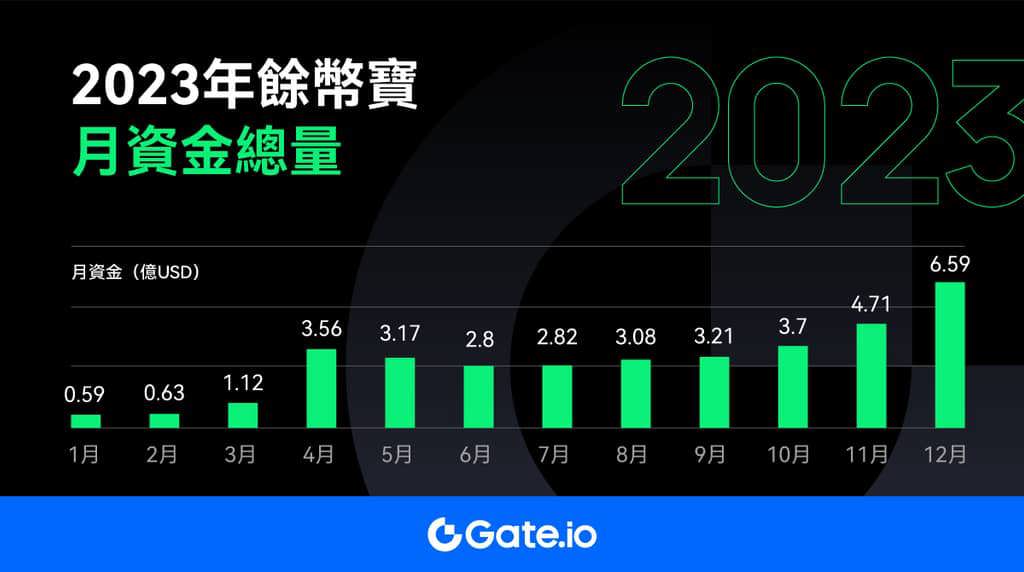2023年,Gate.io理財新推出余幣寶理財產品,新增14個雙幣寶理財市場,上線急速定投、額外獎勵池和多期限定期理財等新功能,理財用戶規模達百萬人,年度資金總量達 7.68億 USDT。