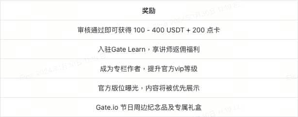 征集不限主題和形式的優質內容,參與者申請并附上自己創作的內容,一經審核并上線,不僅可獲得最高 600 USDT 等值獎勵 !還有機會成為 Gate Learn 專欄作者,官方還會在節日準備的驚喜禮盒。立即提交內容,加入創作者行列 !