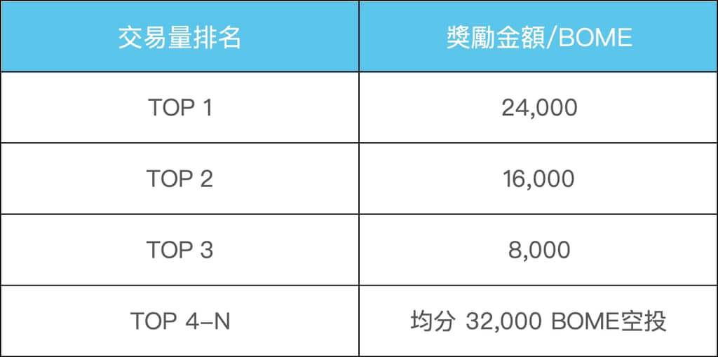 ###📌活動三:新人交易禮,瓜分 80,000 BOME獎勵!活動期間,新註冊用戶完成交易且累計交易量≥100 USDT,將根據最終交易量排名,瓜分 80,000 BOME獎金池!交易量越高,獎勵越高!