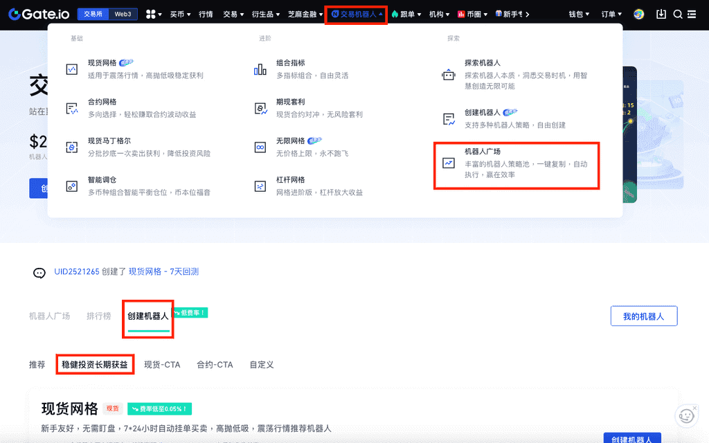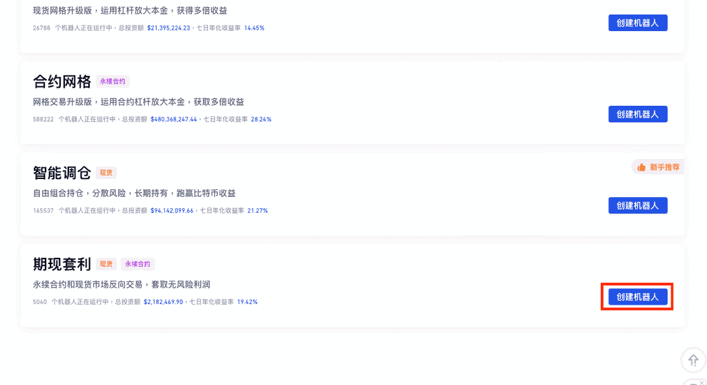 交易機器人—機器人廣場—創建機器人—穩健投資長期獲益—期現套利—創建機器人