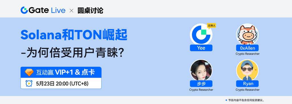 【看直播贏VIP 1】GateLive5月23日圓桌討論:Solana和TON崛起 - 為何倍受用戶青睞?