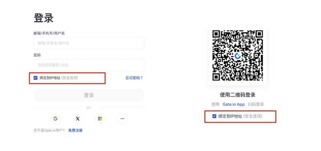 **注意:**掃碼登錄的用戶,Gate.io也支持勾選“綁定到IP地址”的功能。