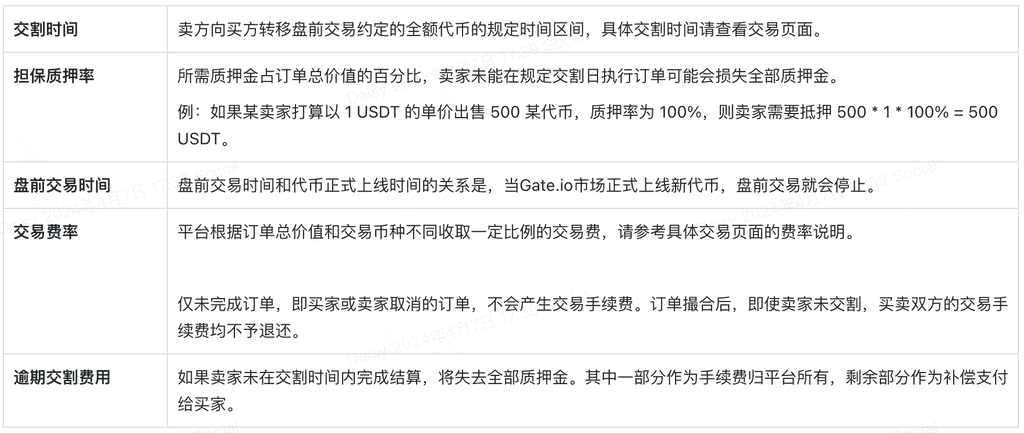 - 在確認Debank Token(代幣)總供應量和積分兌換比例之后,Gate會開啟Debank Token(代幣)盤前交易。屆時,Debank Points(積分)盤前交易已完成訂單將會轉移到DeBank Token(代幣)盤前交易,Gate會根據實際的官方積分與代幣兌換比例為用戶完成DeBank Points(積分) 到DeBank Token(代幣)的轉換。4)請時刻關注交割時間表并按時完成交割,若不遵守交割時間表可能導致損失質押金。**
