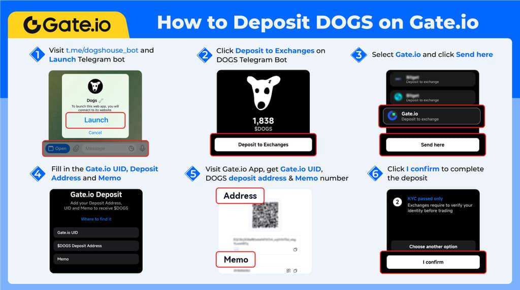 作為DOGS項目的官方充值平臺,Gate.io現已支持DOGS代幣的充值服務。用戶可以通過DOGS電報機器人點擊“充值到交易所”,選擇“Gate.io”點擊Send按鈕,填寫Gate.io UID、充值地址和Memo。訪問 Gate.io App獲取以上Gate.io UID、充值地址和Memo后,點擊確認即完成充值。