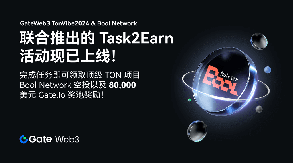Gate.io x Bool Network聯合推出的 Task2Earn 活動現已上線!TonVibe2024 生態季 新空投項目Bool Network:領取Bool Network空投和瓜分$80,000 Gate.io獎池!