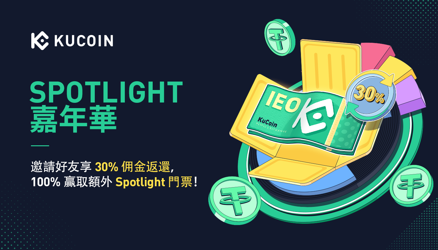 KuCoin Spotlight 嘉年華——邀請好友享 30% 傭金返還,100% 贏取額外 Spotlight 門票!