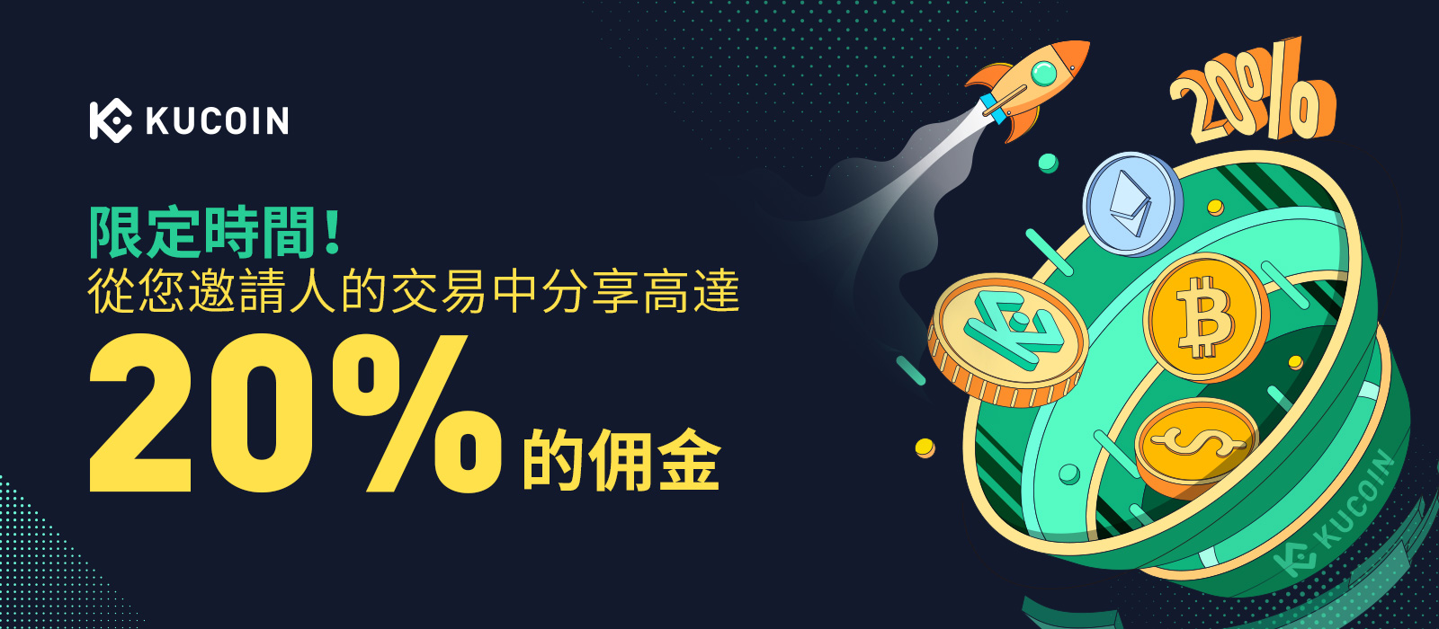 不要錯過這個最大化您收入的機會!立即開始邀請您的朋友加入 KuCoin,享受 20% 的傭金!