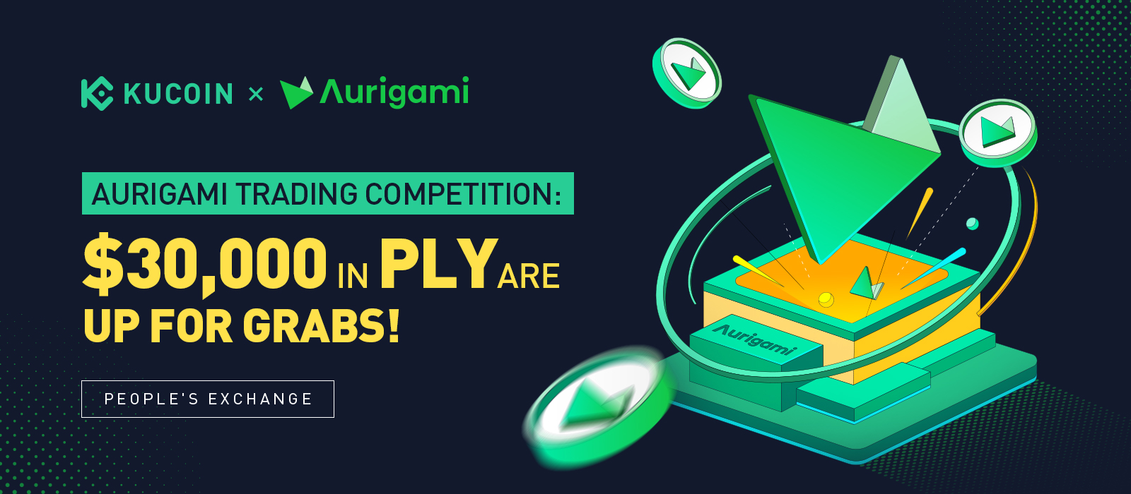 為了感謝KuCoin用戶對Aurigami(PLY)的支持,我們將發起一項活動,向符合條件的KuCoin用戶贈送價值30,000美元的PLY獎池!
