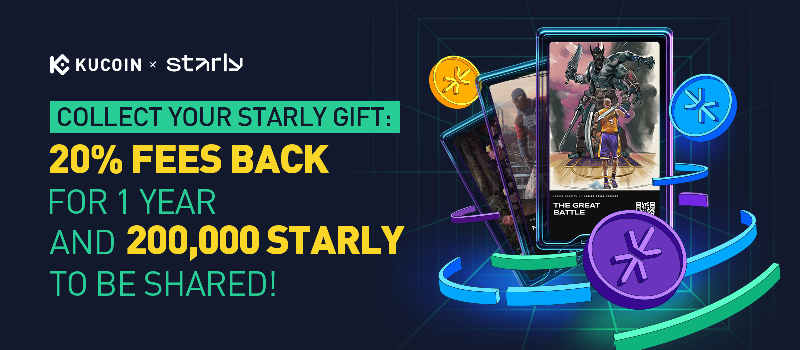 為了感謝 KuCoin 用戶對 Starly (STARLY) 的支持,KuCoin 將發起一項活動,向符合條件的 KuCoin 用戶贈送 200,000 STARLY(約合 42,500 美元)的獎勵池。此外,所有通過 Starly 推薦代碼注冊的新用戶都將享受 1 年內 KuCoin 所有交易對交易量的 20% 返利!