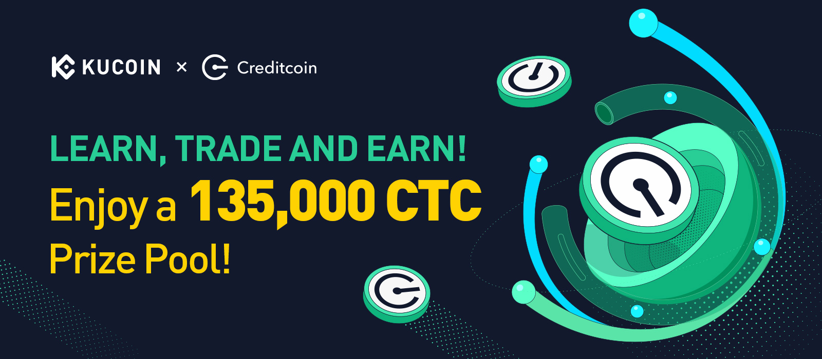 為了感謝KuCoin用戶對Creditcoin(CTC)的支持,我們將發起一項活動,向符合條件的KuCoin用戶贈送135,000 CTC獎勵池。