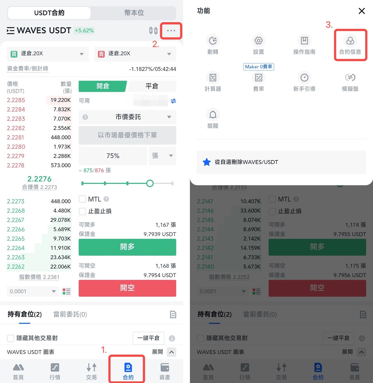 APP: 合約>> ··· >>合約信息