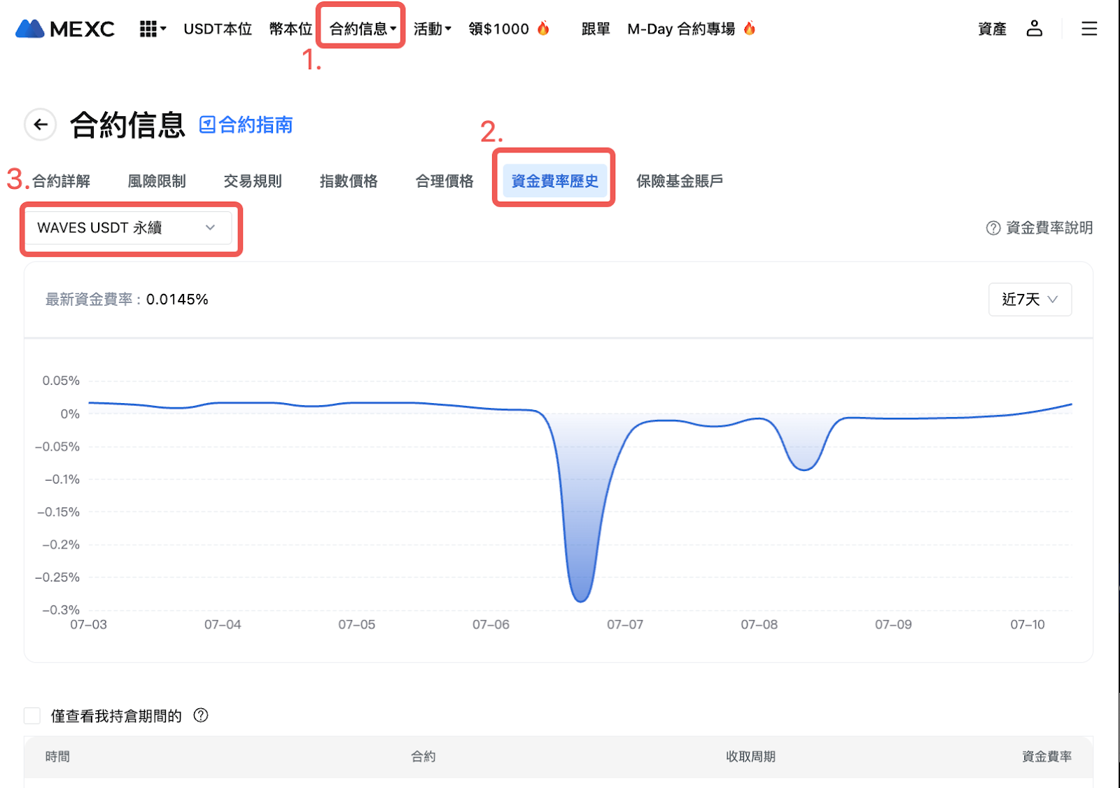 您可以通過以下步驟了解最新的資金費率詳情。