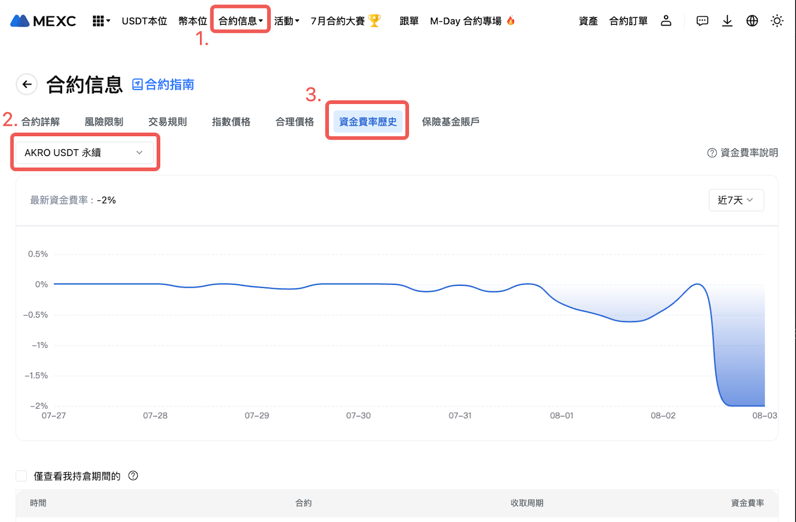 MEXC AKRO U本位合約,資金費率結算頻率調整通知(8/3)