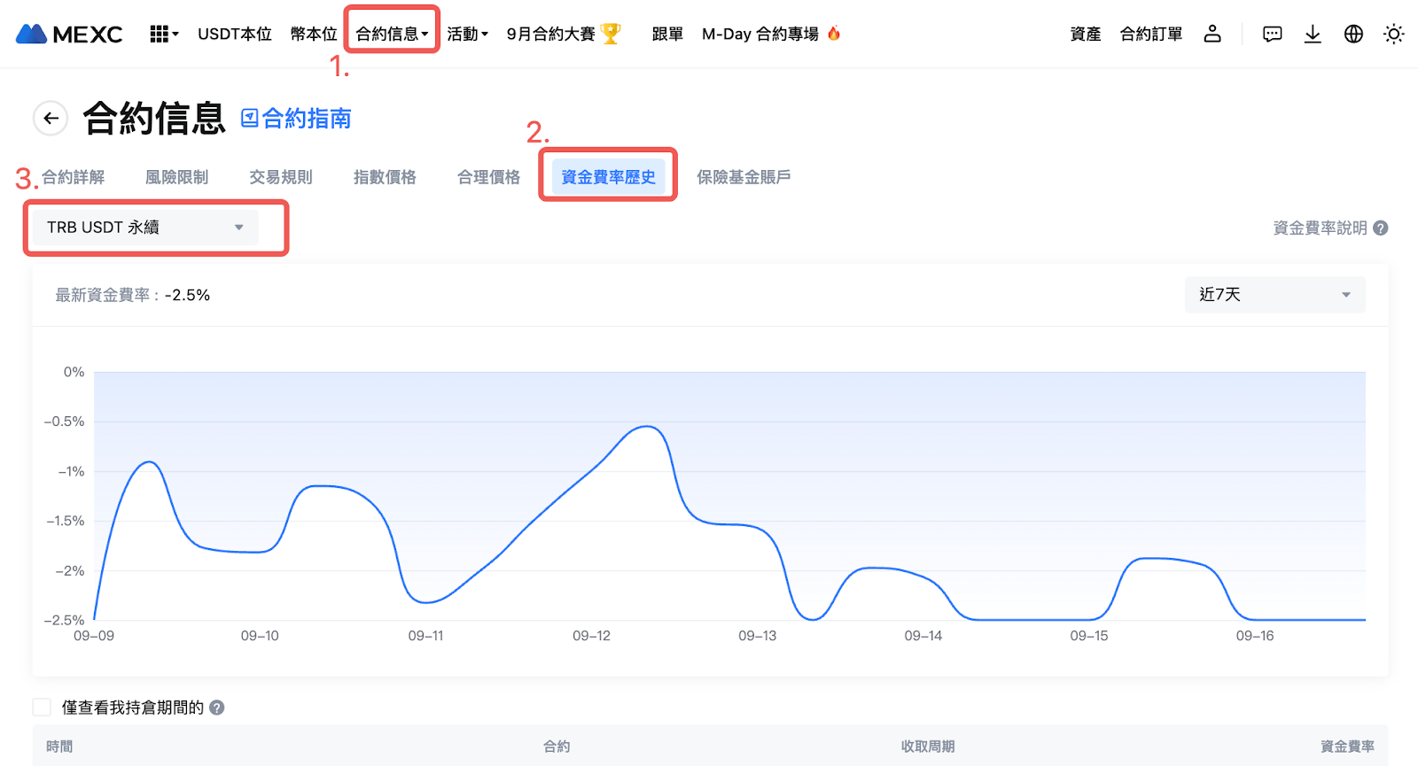 您可以通過以下步驟了解最新的資金費率詳情。