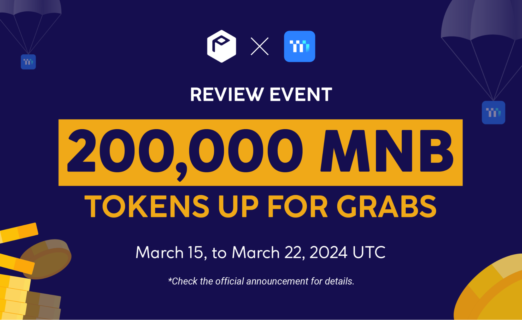 100 名幸運參與者將隨機獲得2,000 MNB代幣獎勵。 只需完成以下所有以下任務: