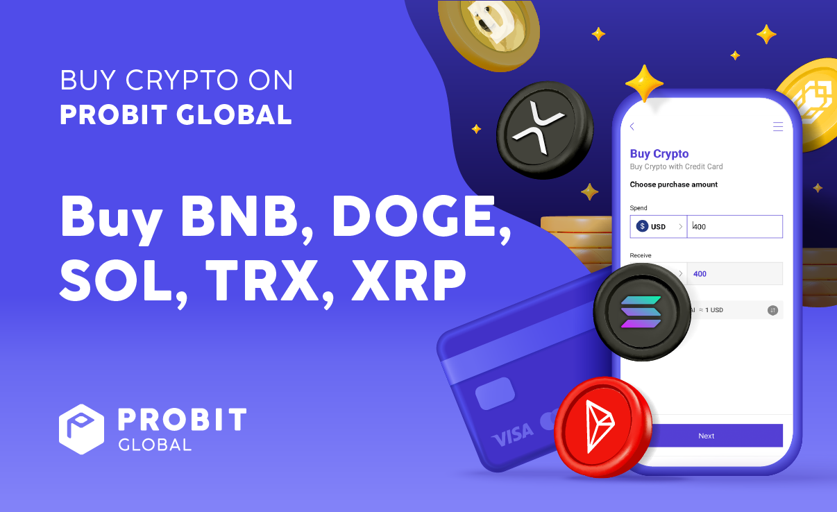 ProBit Global 很高興添加BNB 、 DOGE 、 SOL 、 TRX和XRP來購買加密貨幣。