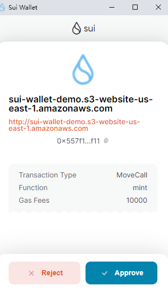 第 2 步 在 Sui 錢包上點擊“Approve”,然后您就可以在 Sui 測試網上成功鑄造 NFT了!
