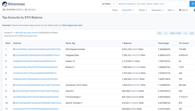 您可以使用區塊鏈瀏覽器找到交易相對較少但持有大量加密資產的單個錢包地址,然后您可以看到他們在主網上的確切代幣數量以及他們最近移動的代幣。此外,如果您使用以太坊區塊鏈的區塊鏈瀏覽器 Etherscan,您可以使用 Etherscan 上的監視列表設置警報,以跟蹤進出某個地址的交易。