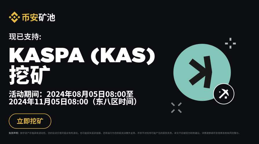 KAS尚未在Binance.com上市,币安矿池推出KAS挖矿服务并不保证代币在 Binance.com上市 ;