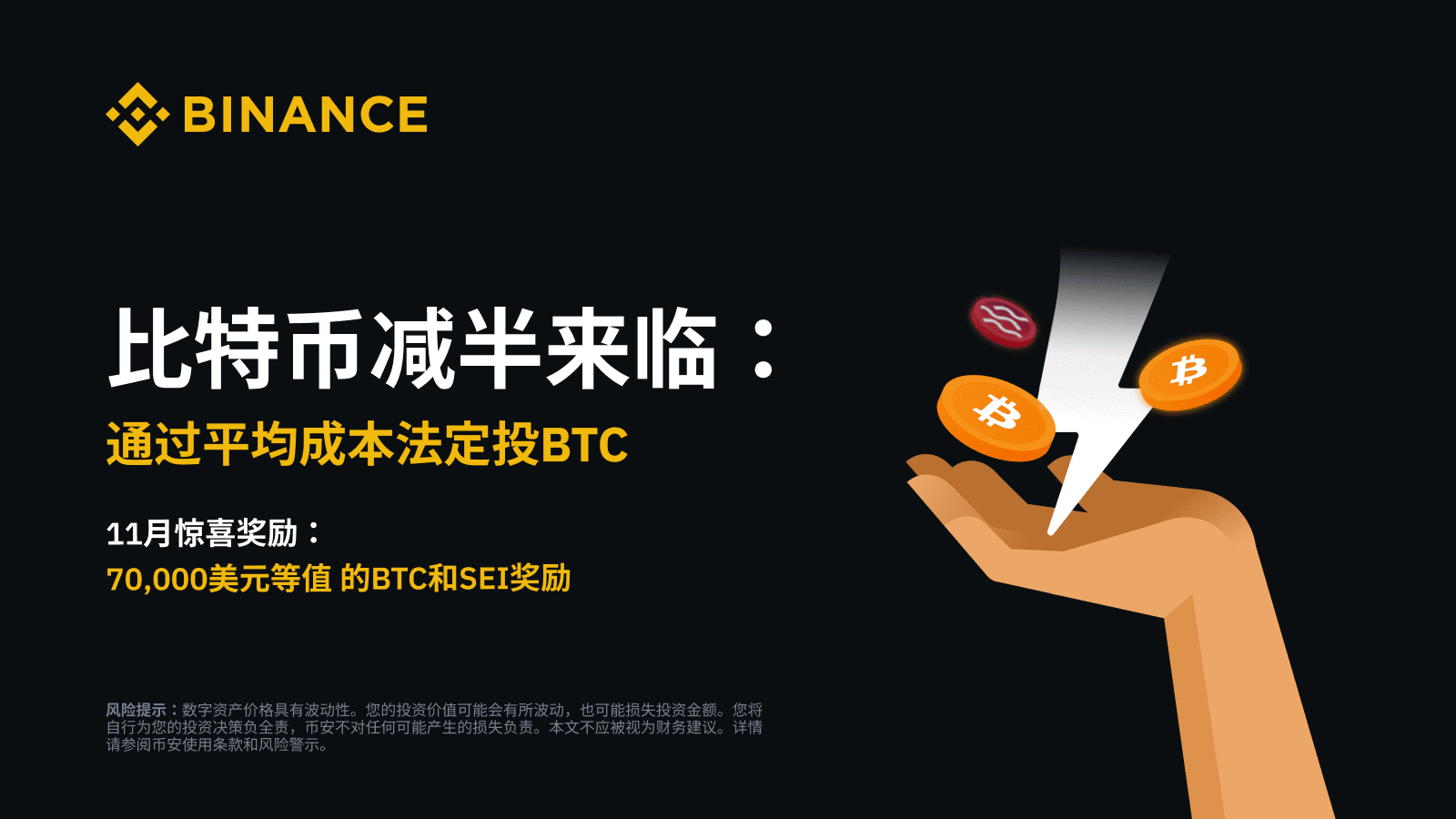 币安将在11月推出两项新的定投活动,符合资格的用户,可获得最高2,000 美元等值BTC代币券和一个免费的定投SEI每日计划。