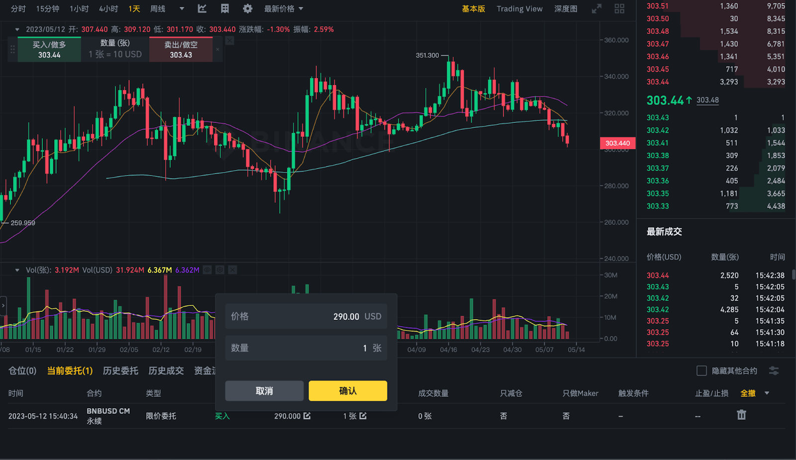 如需访问委托订单修改功能,用户需前往合约交易页面的【当前委托】,在修改价格或/和数量之后,点击下方的【确认】按钮。