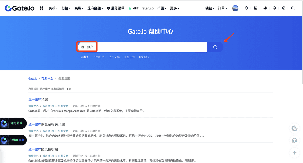 1、点击“帮助中心”搜索“统一账户”查询产品文档
